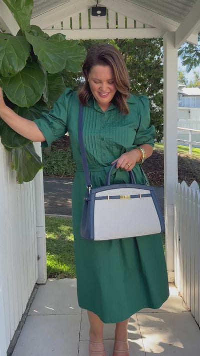 Meet the Amelia! She's perfect for a busy work day or an extensive shopping trip, with both top handle and crossbody strap options keeping your essentials safe all throughout the day. Her navy exterior provides timeless style, and internally, she's got the classic pocket and zip enclosures for maximum organisation.